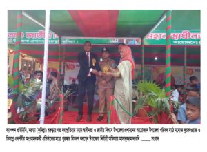 অপর দিকে সকাল সাড়ে ৮টায় উপজেলার বটতলী শহিদ বীর মুক্তিযোদ্ধাদের স্মৃতিস্তম্ভে প্রশাসনের পক্ষ থেকে পুষ্পস্তবক অর্পণ করা হয়। সকাল ৯টায় উপজেলা পরিষদ চত্বরে সমবেত কন্ঠে জাতীয় সংগীত পরিবেশনের মাধ্যমে আনুষ্ঠানিক ভাবে জাতীয় পতাকা উত্তোলন করেন প্রধান অতিথি উপজেলা নির্বাহী অফিসার আসাদুজ্জামান রনি। পরে বিভিন্ন শিক্ষা প্রতিষ্ঠানের ছাত্র-ছাত্রী, রোভার স্কাউট, গার্লস গাইড, কাব দল, পুলিশ, আনসার ও ভিডিপি অংশগ্রহনে সমাবেশ, মনোজ্ঞ কুচকাওয়াজ ও ডিসপ্লে পদর্শনী অনুষ্ঠিত হয়।