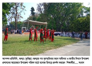 অপর দিকে সকাল সাড়ে ৮টায় উপজেলার বটতলী শহিদ বীর মুক্তিযোদ্ধাদের স্মৃতিস্তম্ভে প্রশাসনের পক্ষ থেকে পুষ্পস্তবক অর্পণ করা হয়। সকাল ৯টায় উপজেলা পরিষদ চত্বরে সমবেত কন্ঠে জাতীয় সংগীত পরিবেশনের মাধ্যমে আনুষ্ঠানিক ভাবে জাতীয় পতাকা উত্তোলন করেন প্রধান অতিথি উপজেলা নির্বাহী অফিসার আসাদুজ্জামান রনি। পরে বিভিন্ন শিক্ষা প্রতিষ্ঠানের ছাত্র-ছাত্রী, রোভার স্কাউট, গার্লস গাইড, কাব দল, পুলিশ, আনসার ও ভিডিপি অংশগ্রহনে সমাবেশ, মনোজ্ঞ কুচকাওয়াজ ও ডিসপ্লে পদর্শনী অনুষ্ঠিত হয়।